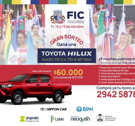 Provincia Sortea otra Hilux en la Fiesta de los Inmigrantes y Colectividades de Zapala.